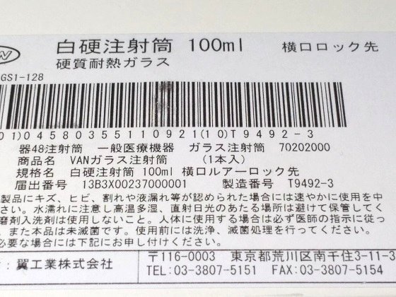 - 注射筒:硬質ガラス