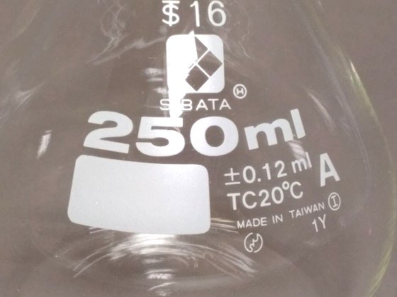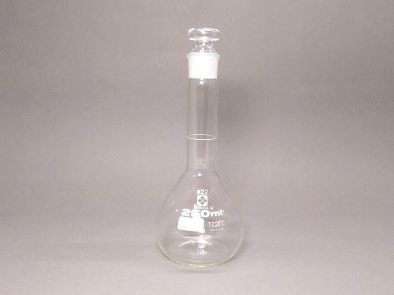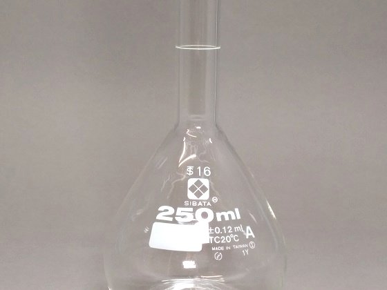 - ガラス器具 容器類 メスフラスコ 白色 200mL、250mL