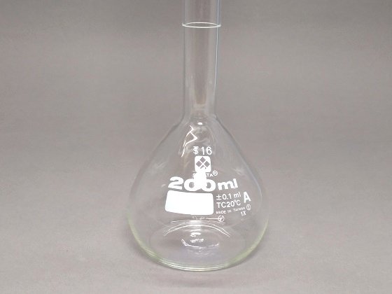 メスフラスコ 白色 200mL スーパーグレード