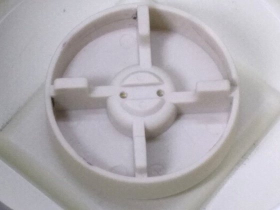本体裏側面の下方(電源コードの少し上)に、シール貼付痕が薄く残っています。