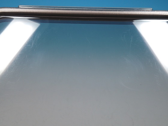 蓋に、若干擦りキズアリ。また蓋の中央部分に若干曇りアリ。
